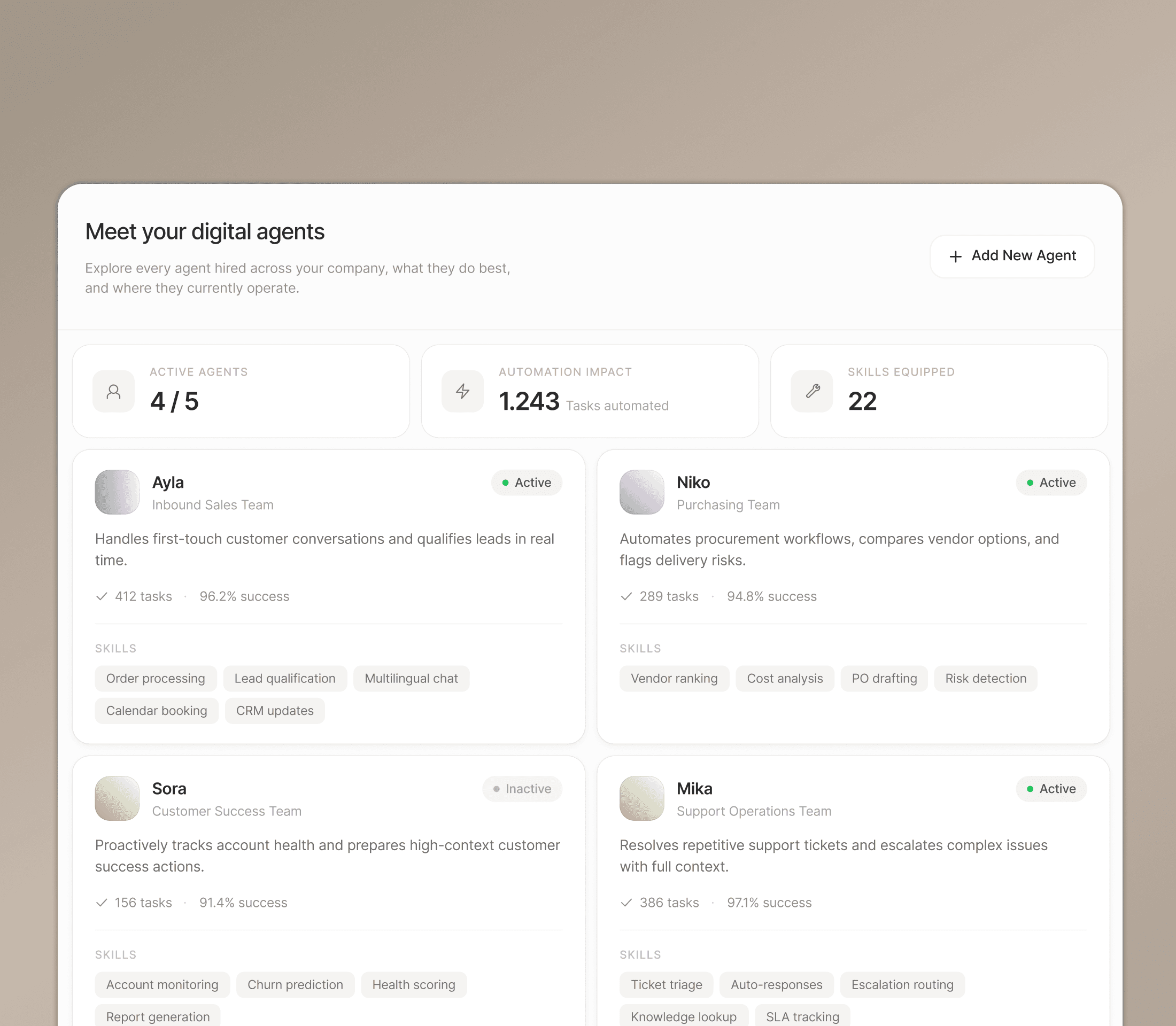 A single workspace where your team manages AI Coworkers, reviews their work, and stays in full control.